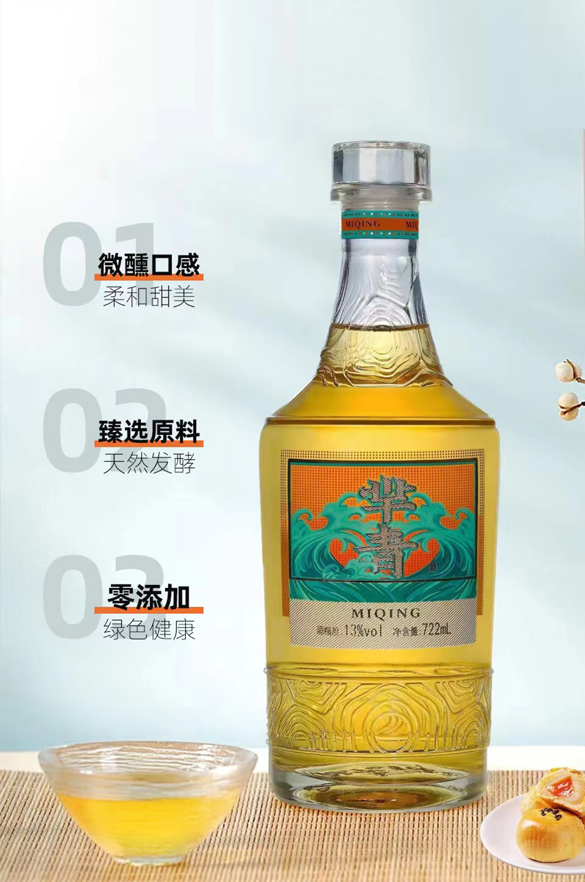 羋青酒具有透亮的琥珀色澤,寶石般的視覺感受,芳香宜人,含多種氨基酸、維生素,酒體內容極其豐富;喝一口,即喚醒所有味蕾;喝兩口,絲滑入胃;喝三口,通達五臟六腑。暢飲羋青酒,感受千年酒魂。